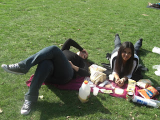 Mas como a gente andou .. e MUITO. Tínhamos a opçao de pegar o tram lá, mas como a gente estava mendigando tudo, resovemos ir a LOPEN mesmo. E andamos, andamos, andamos. Passamos na frente de vários museus, que claro a gente nao entrou, porque isso leva tempo, e o que a gente menos tinha pra gastar era tempo (depois de dinheiro). Fomos no Iamsterdam, mais fotos, fomos no Red Light, nenhuma foto (porque aliás nao pode), fomos no Vondel Park picnicar e bater uma soneca, mais fotos, fomos sentar no sapatinha holandes perto da Dam Square, mais fotos. Queríamos ir em outros lugares mais, porém nos faltou tempo.